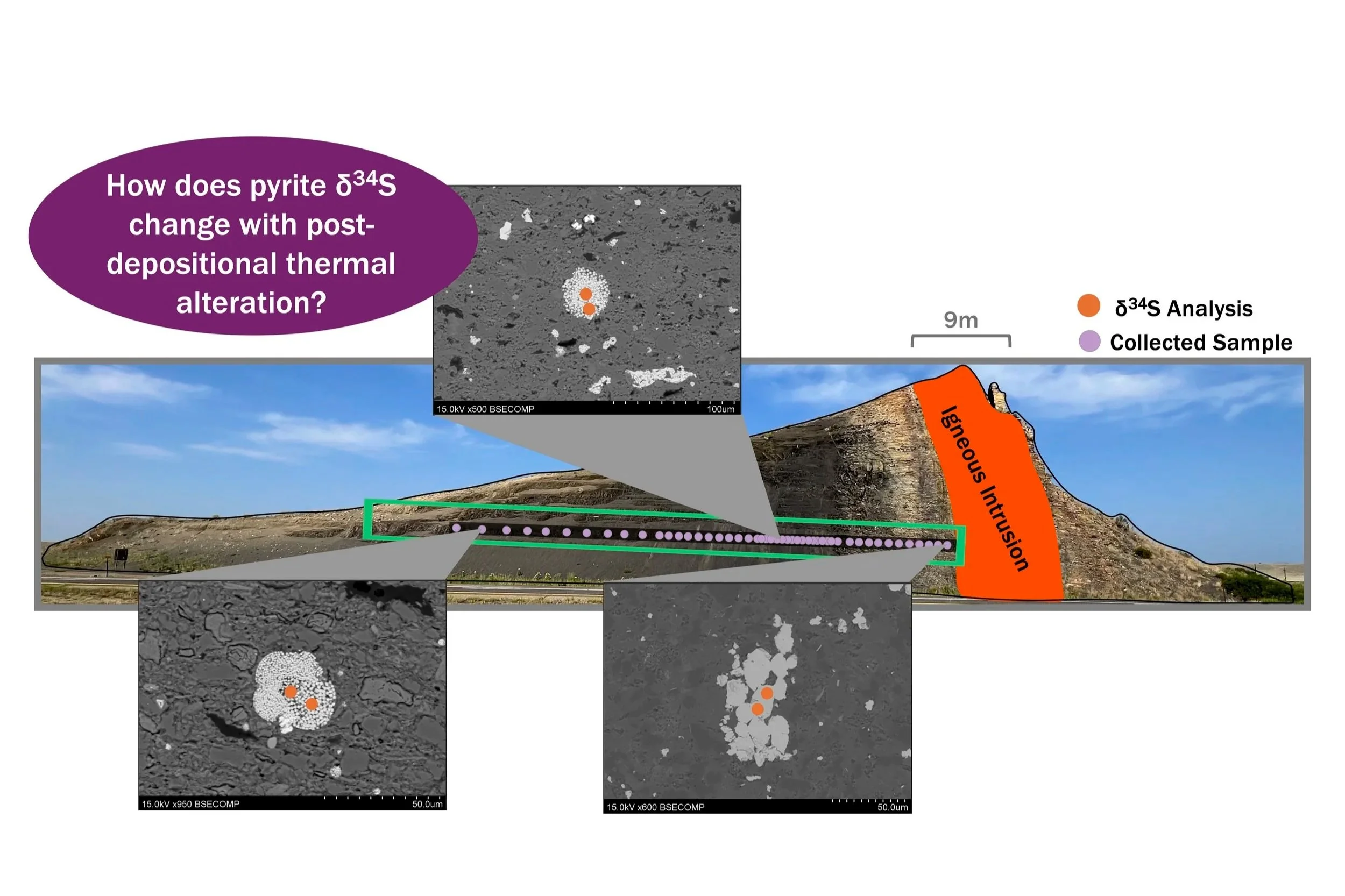 Investigating whether sulfur isotope compositions of the sedimentary rock record represent original depositional signals, or a thermally altered signal through the geochemical characterization of shale samples that have been variably heated.